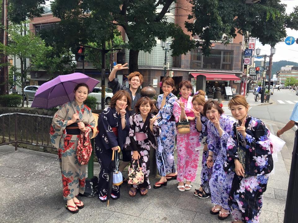 浴衣を着て、セットして、