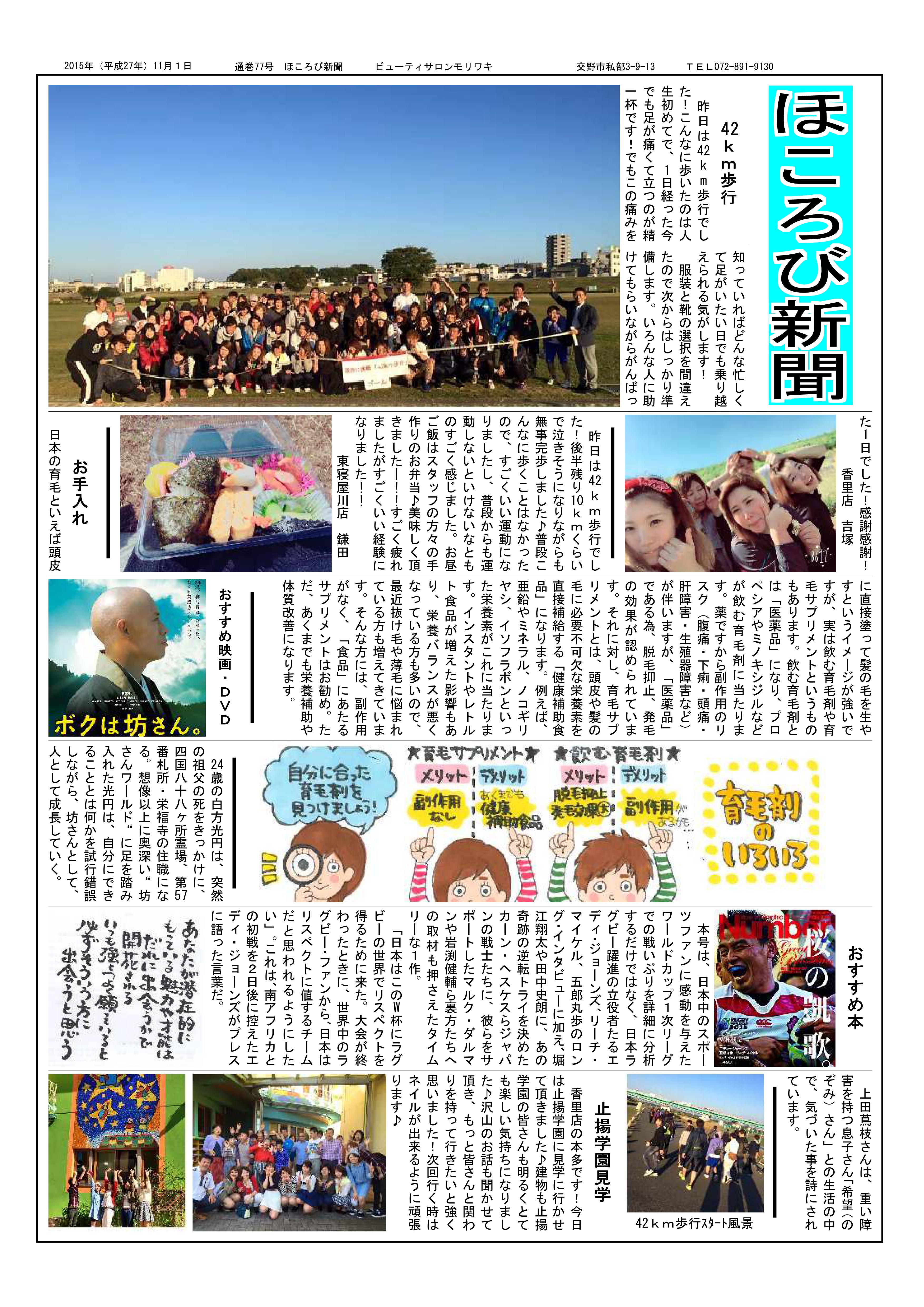 先日の月曜日に42キロ歩行がありました。モリワキスタッフみんなで一生懸命歩きました。