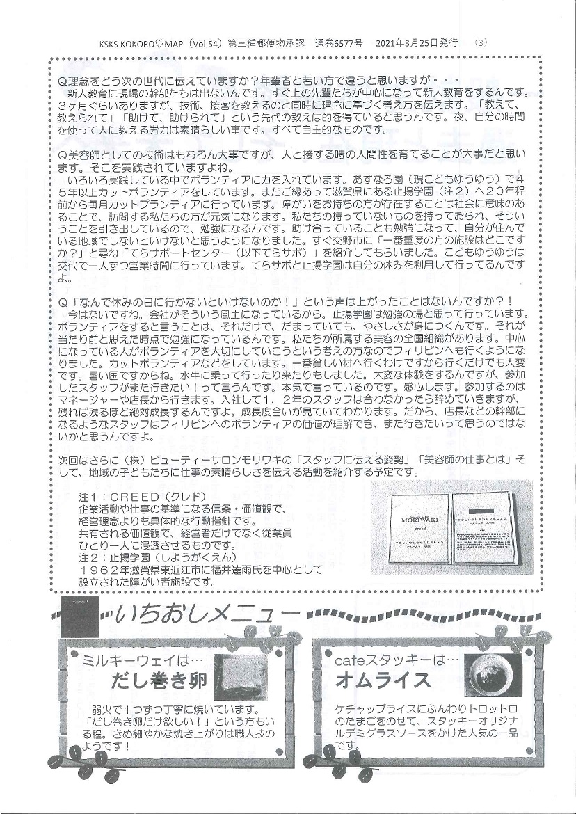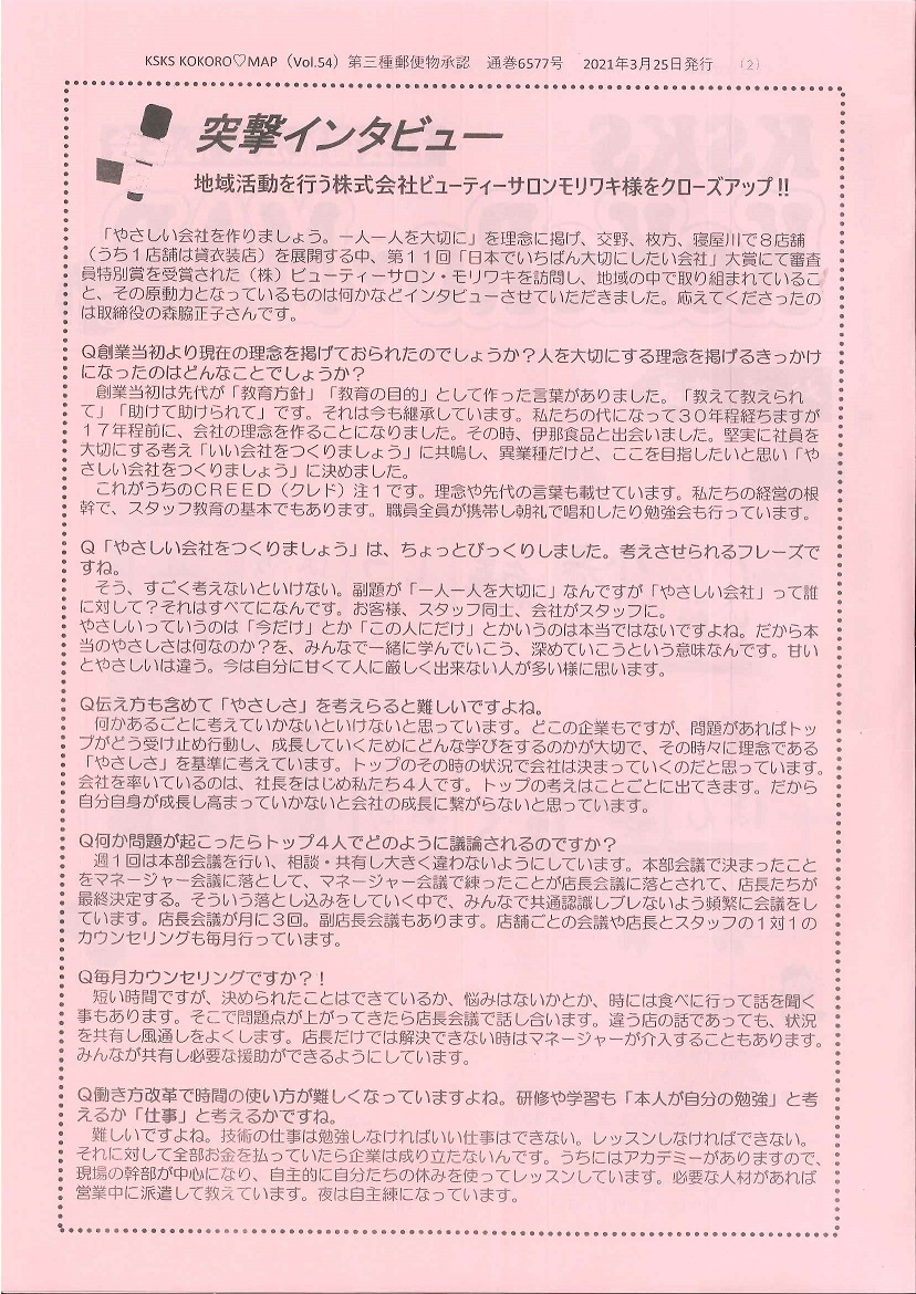 社会法人心生会の会報にモリワキが紹介されました。