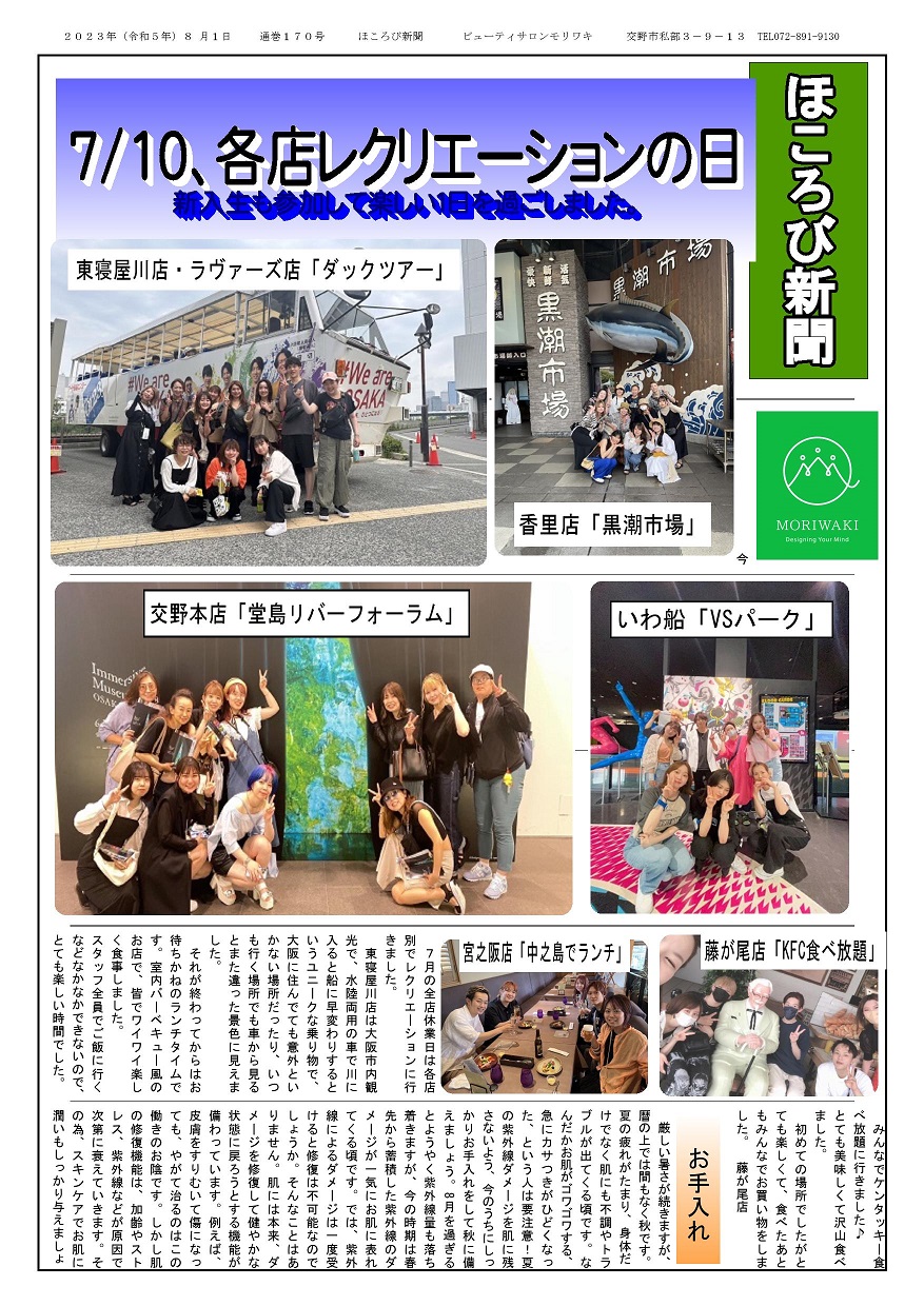 ほころび新聞8月号を掲載致します。