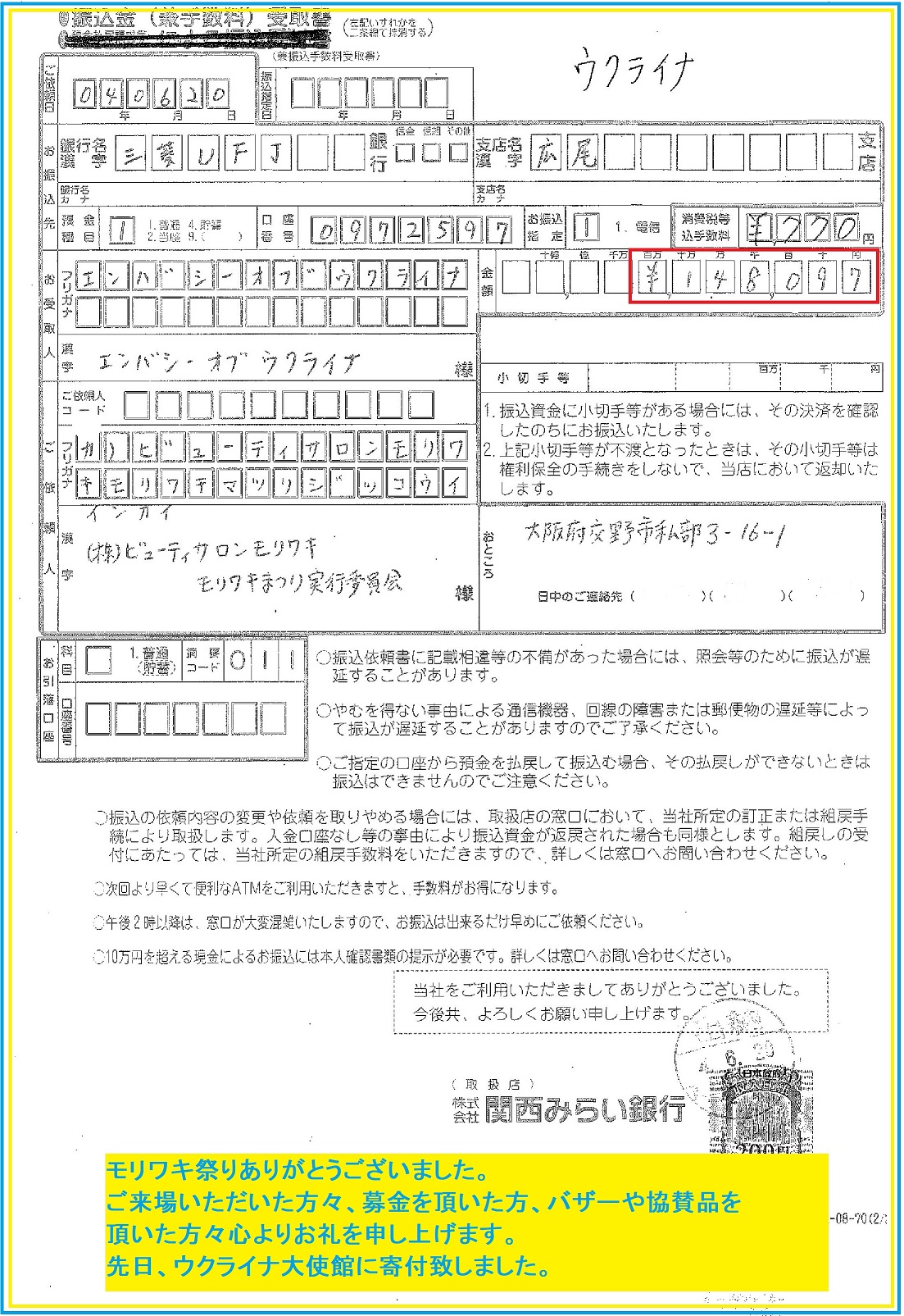 被災地訪問の数日後。「積徳」を掲げる同団体らしい思いやりがありました。