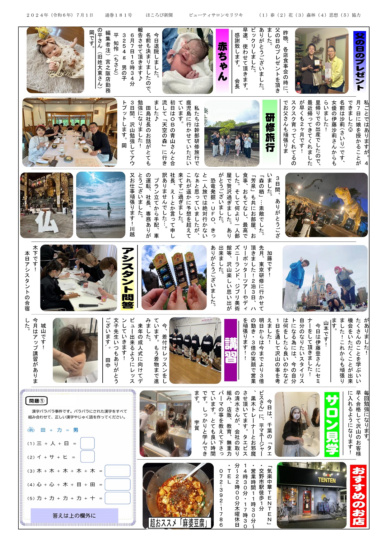 この行動には根拠があります。MORIWAKIの経営理念は「やさしい会社をつくりましょう」(下の写真参照)。これは利他の心、感謝の心を持ち、相手の気持ちや立場にたって、感じる心を養うという目的に根ざしています。ともすると「自分さえ良ければいい」という無関心な社会をやさしい社会に変えていきたい。同サロンはそのための発信や行動をめざしています。