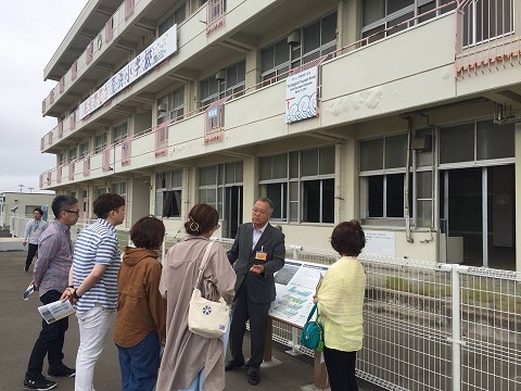 この小学校は、すでに閉校していますが、学校の中は、当時のままを見てもらうために残してありました。3月11日の時のこと、そして復興している今までのことを伝えてくださるボランティアの方のお話を聞きながら、学校内を回りました。